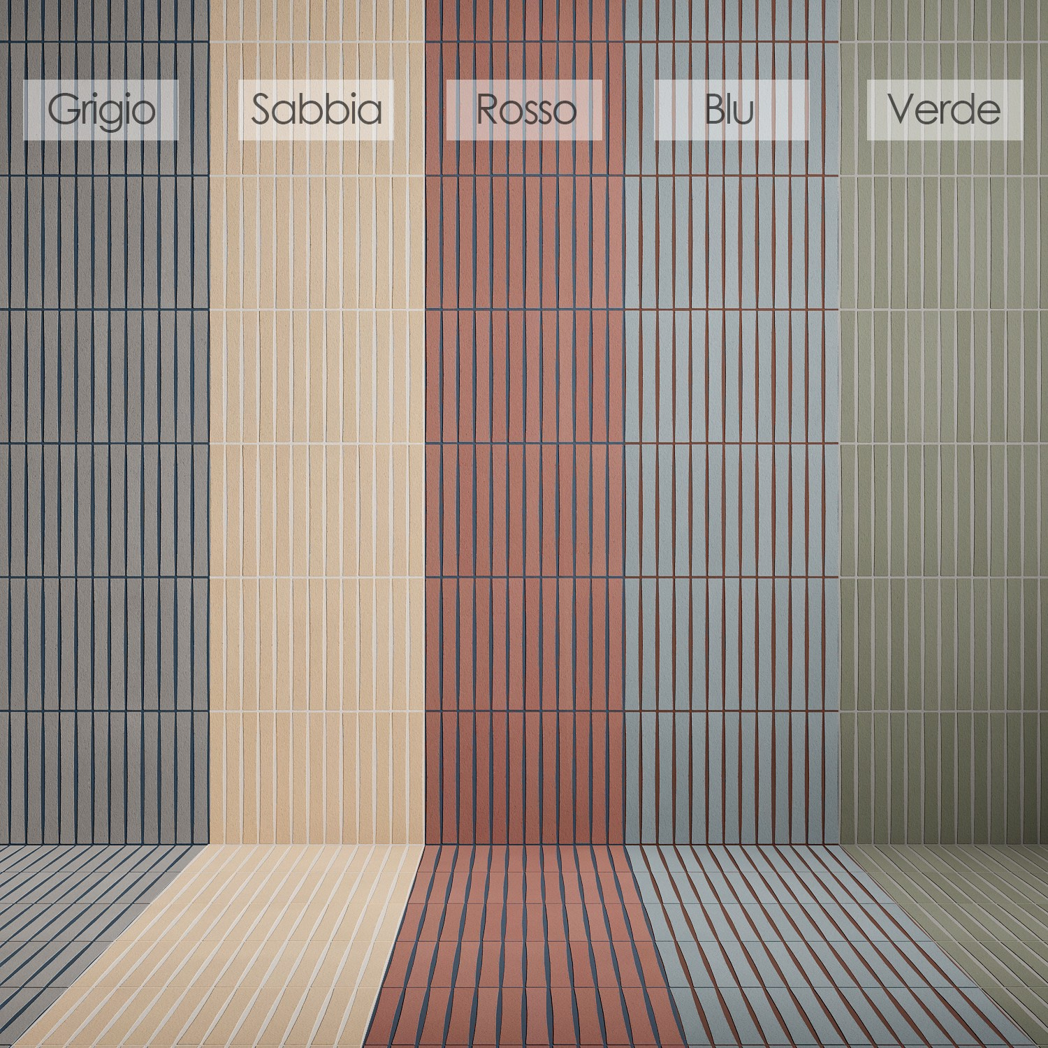 Osso S (30×275mm), Osso L (75×275mm), Bottone S (30×275mm), Bottone L (75×321mm) 5 colors: Sabbia, Grigio, Rosso, Blu, Verde